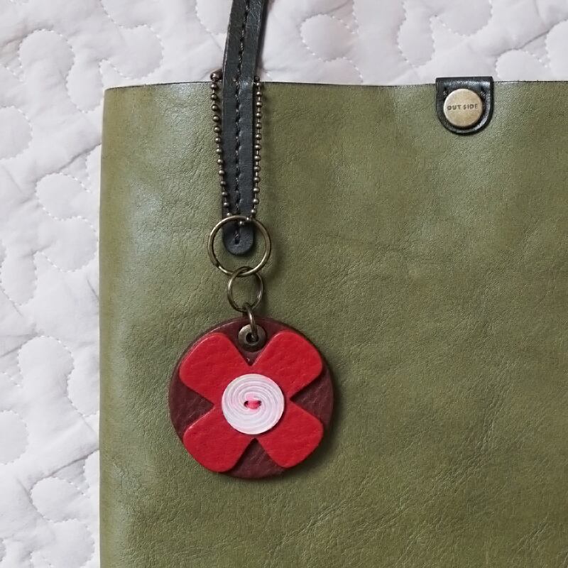 ■イタリアンレザー円型、十字型パーツとフランス製の貝ボタンを組み合わせて作りました。