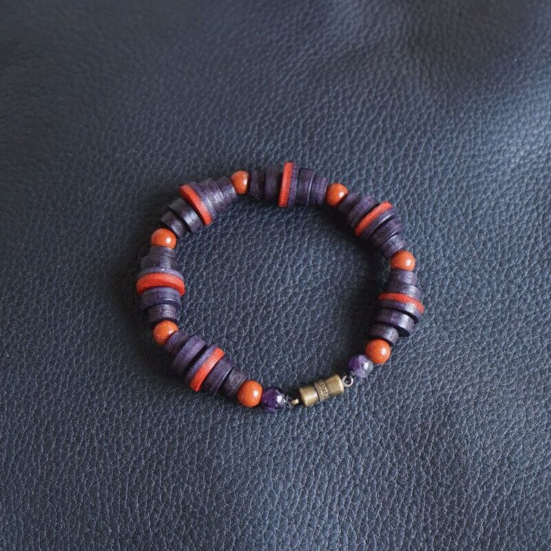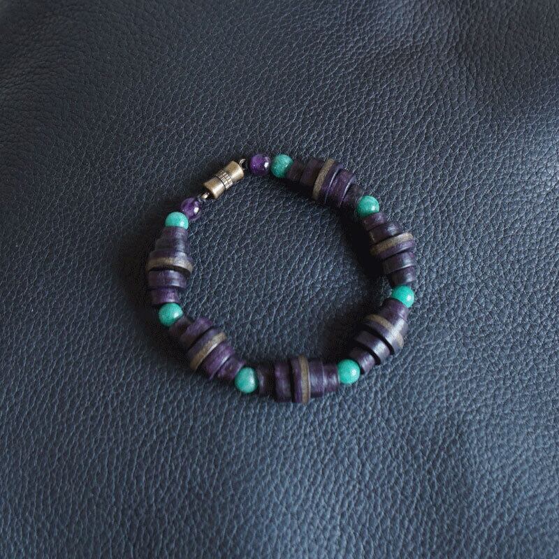 ■パープルのイタリアンレザーのコインパーツと天然石のビーズを組み合わせて作りました。